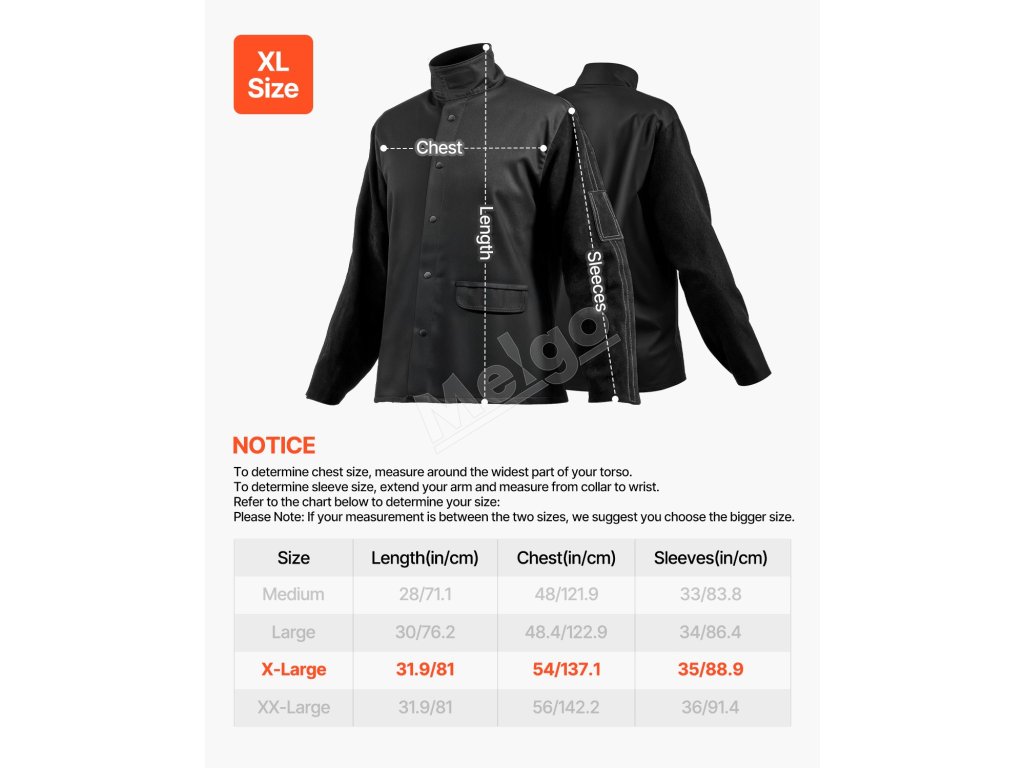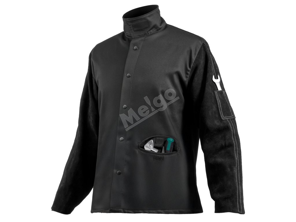 Zvarovacia bunda xl s koženými rukávmi z hovädzej kože, 9 oz.fr bavlna