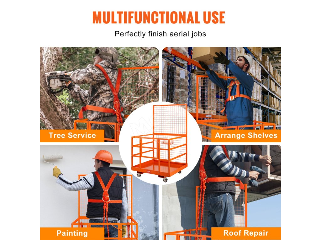 Ak hľadáte pracovnú plošinu, ktorá zvládne rôzne úlohy vo vzduchu, bezpečnostná klietka na vysokozdvižný vozík VEVOR je vašou najlepšou voľbou. Toto príslušenstvo je ideálne na vnútorné aj vonkajšie letecké úlohy. To znamená, že nepotrebujete špecializovanú klietku na orezávanie stromov, maľovanie, inštaláciu svetiel alebo prácu v sklade. Samozrejme, pomáha to šetriť peniaze a čas, pretože na určité letecké úlohy nepotrebujete špeciálnu plošinu ani nemusíte stráviť hodiny hľadaním tej správnej, ktorú by ste mohli použiť.