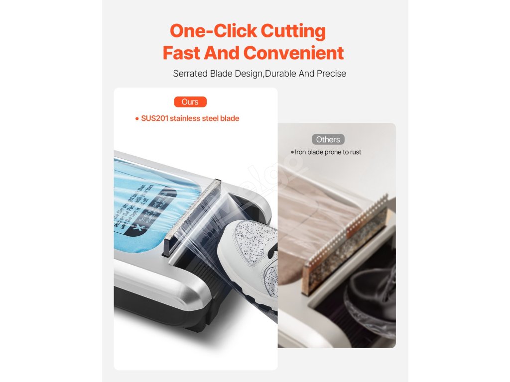 Tento ľahko použiteľný automatický jednorazový návlek na obuv má robustný „jednozrezaný“ zubatý dizajn a efektívne rezacie schopnosti, ktoré zaručujú odolnosť a jednoduché použitie.