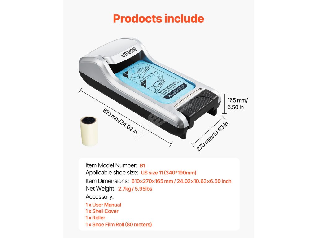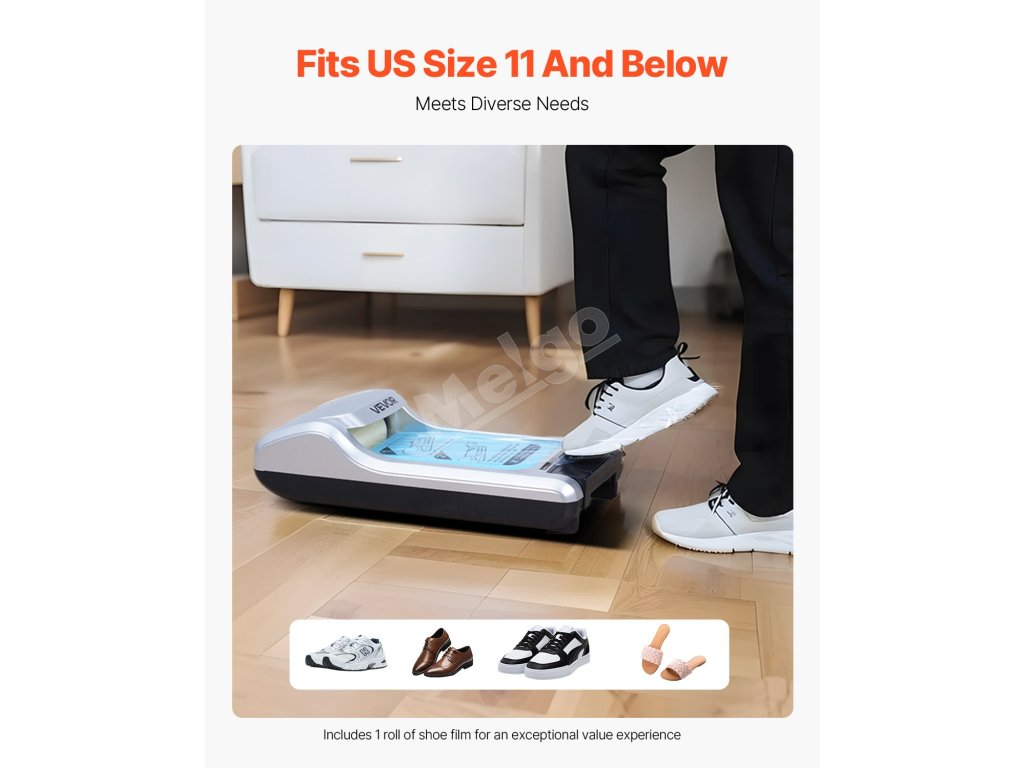 Náš stroj na obaly na topánky je veľmi univerzálny a hodí sa na rôzne veľkosti topánok, od topánok pre dospelých až po najväčšiu pánsku veľkosť 11 (USA) / 44 (EÚ), vďaka čomu je vhodný pre väčšinu používateľov.