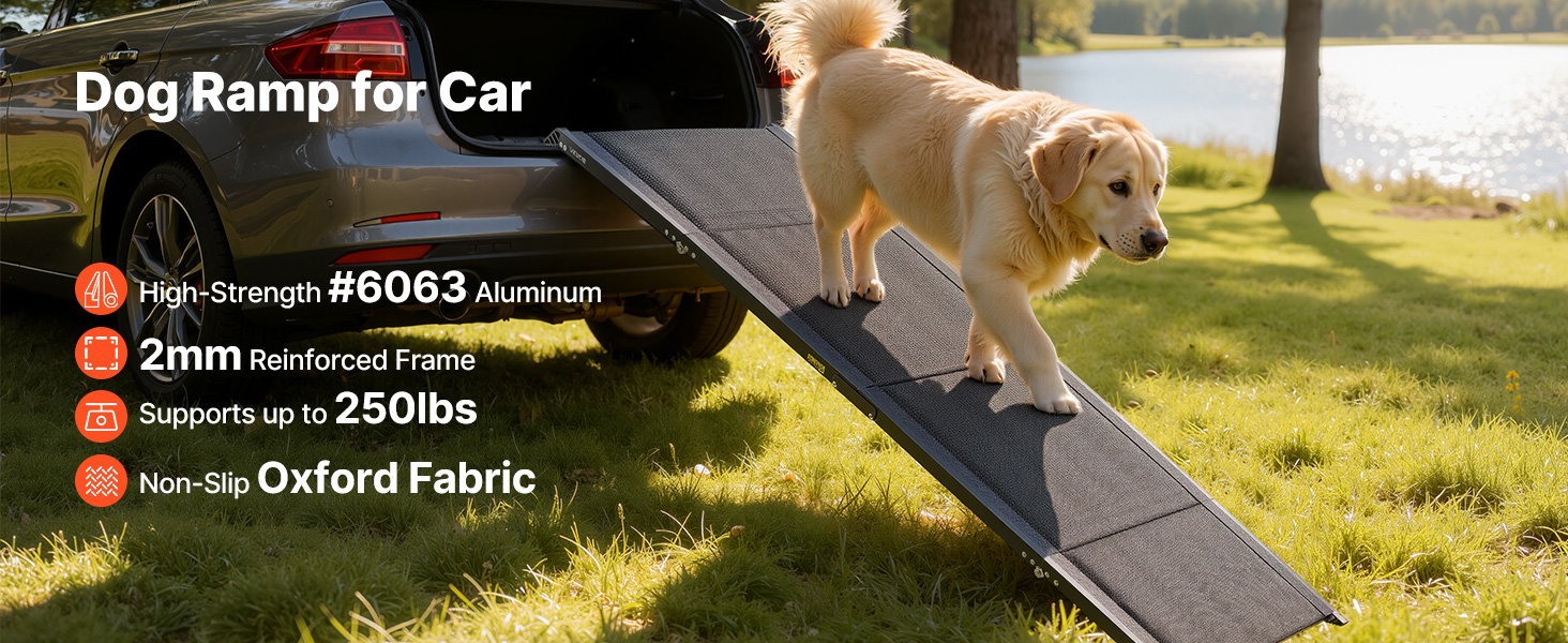 Rampa pre psov do auta má protišmykový povrch a skladacia konštrukcia umožňuje jednoduché skladovanie a prenášanie. Pomáha domácim miláčikom bezpečne a sebaisto nastupovať a vystupovať z auta alebo stúpať po schodoch, je vhodná pre viacero scenárov