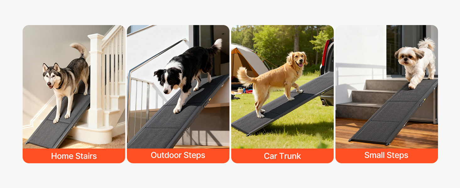 Rampa pre veľkého psa je ideálna pre autá, vnútorné schody, vonkajšie schody, karavany alebo bazény. Znižuje namáhanie kĺbov, čím zabezpečuje bezpečný a pohodlný pohyb domácich miláčikov v každom scenári a poskytuje vám pokoj počas výletov.