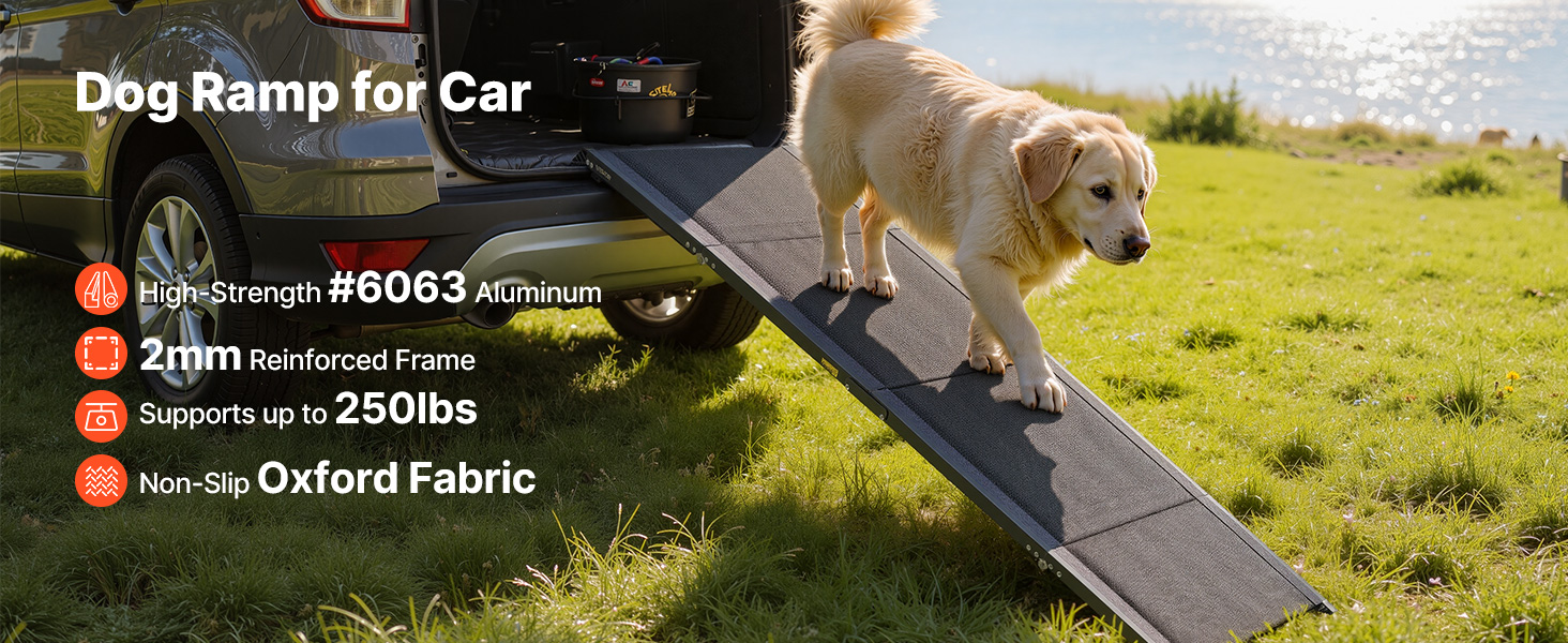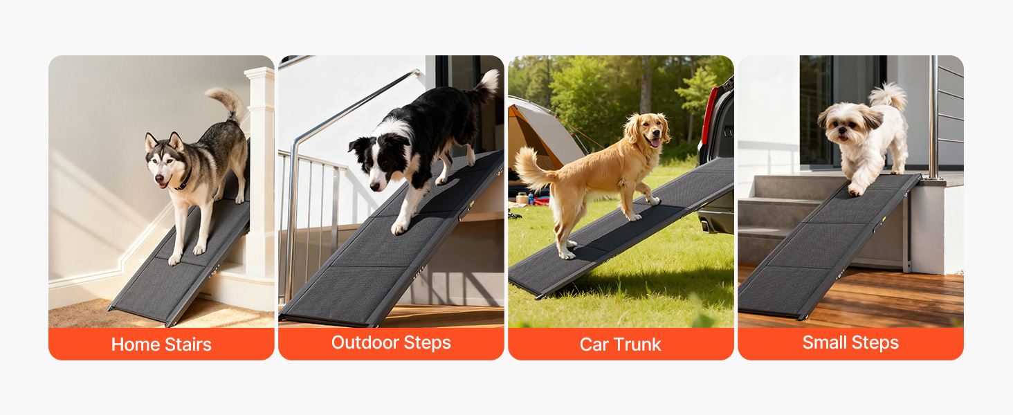 Rampa pre psov do auta má protišmykový povrch a skladacia konštrukcia umožňuje jednoduché skladovanie a prenášanie. Pomáha domácim miláčikom bezpečne a sebaisto nastupovať a vystupovať z auta alebo stúpať po schodoch, je vhodná pre viacero scenárov