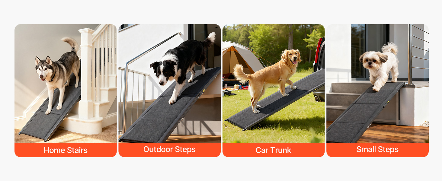 Rampa pre veľkého psa je ideálna pre autá, vnútorné schody, vonkajšie schody, karavany alebo bazény. Znižuje namáhanie kĺbov, zabezpečuje bezpečný a pohodlný pohyb domácich miláčikov v každom scenári, čím vám poskytuje pokoj počas výletov.