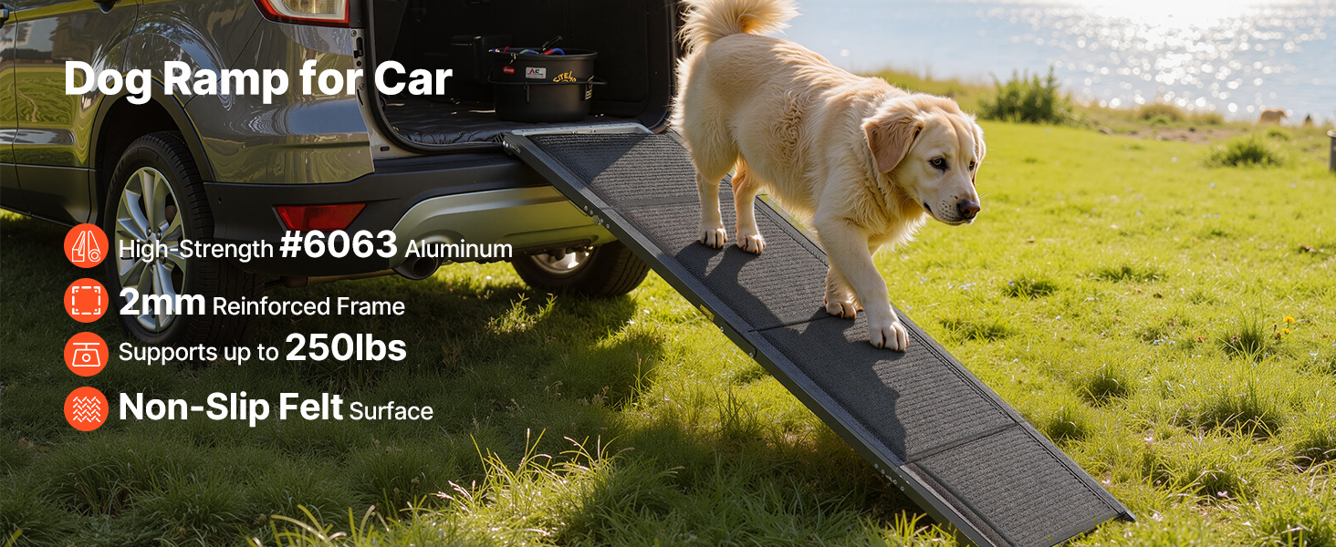 Rampa pre psov do auta má protišmykový povrch a skladacia konštrukcia umožňuje jednoduché skladovanie a prenášanie. Pomáha domácim miláčikom bezpečne a sebaisto nastupovať a vystupovať z auta alebo stúpať po schodoch, je vhodná pre viacero scenárov