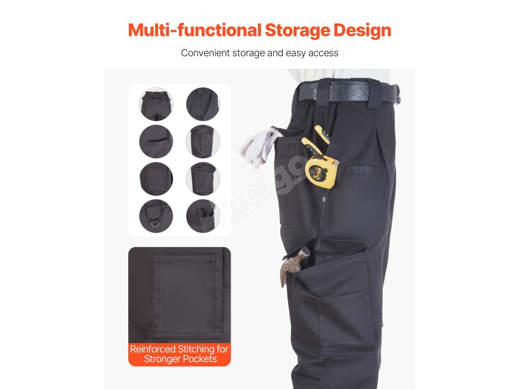 Pracovné nohavice 100% bavlna, nehorľavé, viac vreciek, xxl, čierne