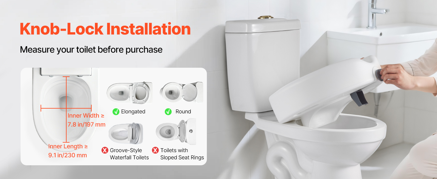 Zvýšené záchodové sedadlo sa vyznačuje jednoduchým a rýchlym nastavením, ktoré zvládne jedna osoba. Pred kúpou skontrolujte tvar a veľkosť vašej toalety, aby ste sa uistili o správnom prispôsobení - kompatibilné typy nájdete na obrázkoch.