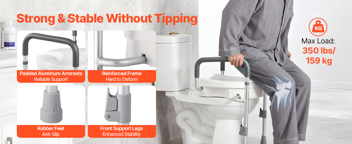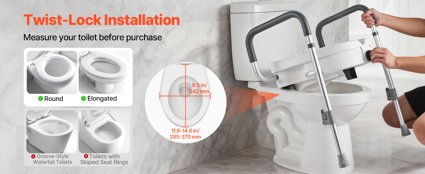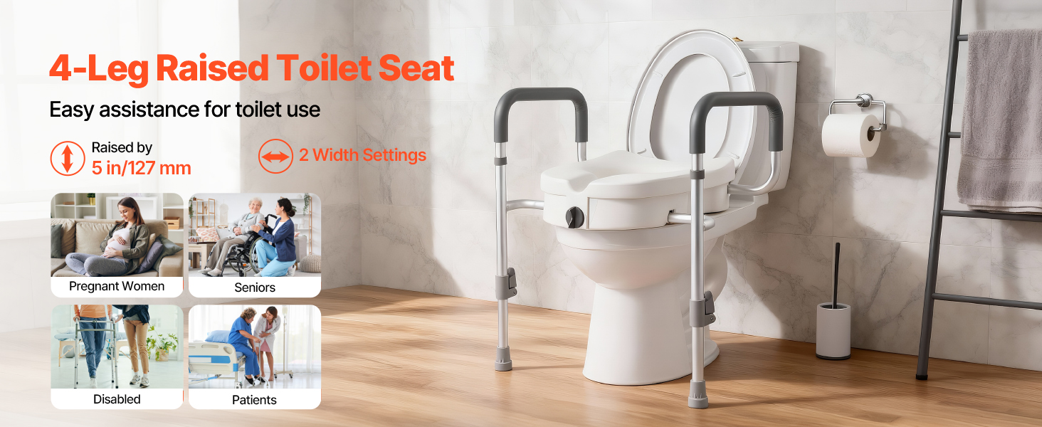 Naše zvýšené záchodové sedadlo zvyšuje výšku toalety o 5 palcov (127 mm) a poskytuje dve možnosti nastavenia šírky. Je ideálne pre tehotné ženy, seniorov, pacientov a zdravotne postihnutých, zvyšuje pohodlie a zároveň znižuje zaťaženie kĺbov počas používania.