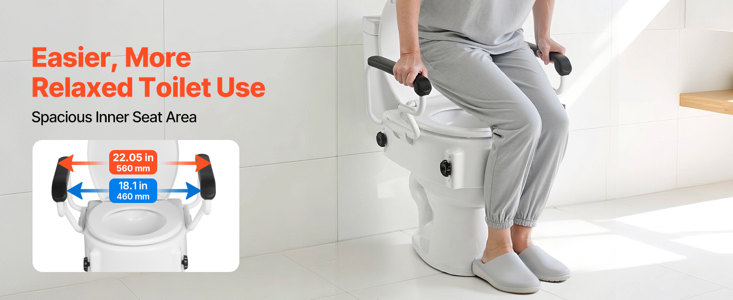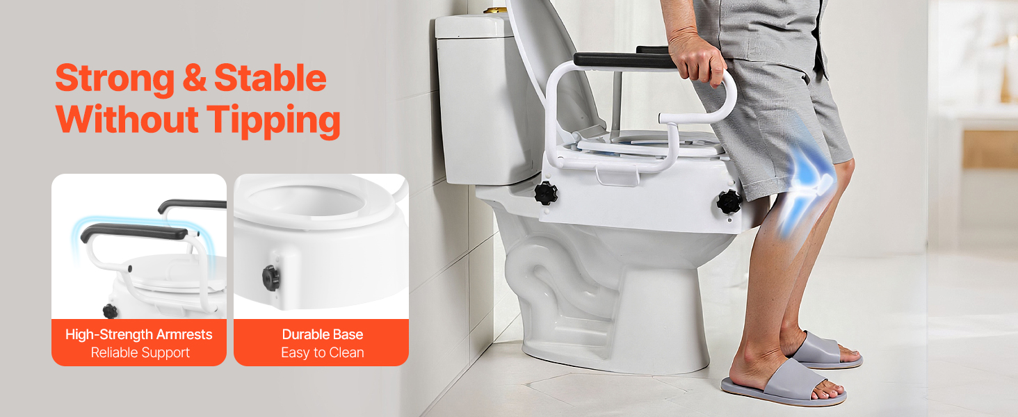 Toto záchodové sedadlo pre telesne postihnutých je vyrobené z odolných a kvalitných materiálov a je odolné voči opotrebovaniu a praskaniu. Jeho pevná konštrukcia poskytuje spoľahlivú oporu a bez obáv sa prispôsobí používateľom s rôznymi typmi postavy a hmotnosťou.