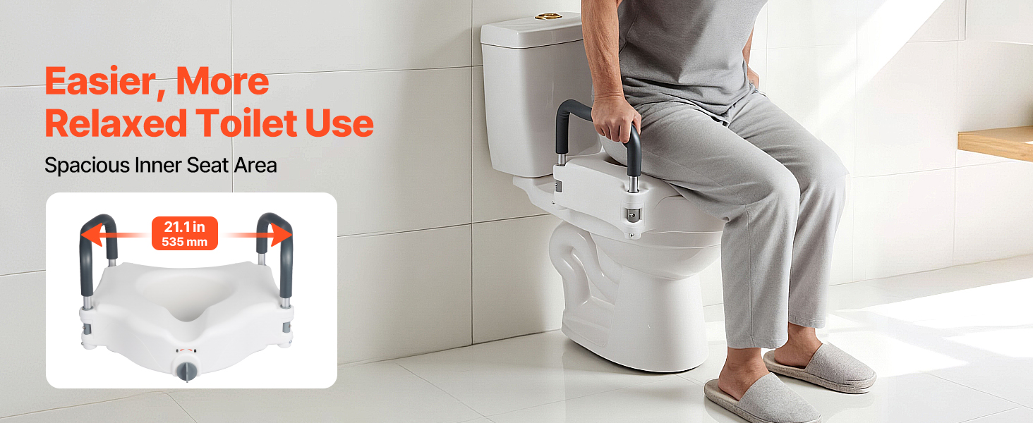 Naše vyvýšené záchodové sedadlo zvyšuje výšku toalety, čím poskytuje pohodlnejší a bezpečnejší zážitok pre tehotné ženy, seniorov, pacientov a osoby so zdravotným postihnutím. Pomáha znižovať záťaž kĺbov a uľahčuje sedenie a vstávanie.