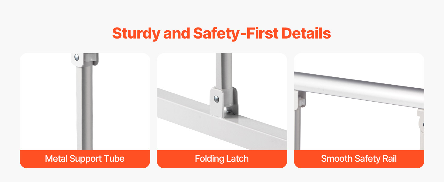 Ľahko sa skladá a schováva za okraj postele, čím uľahčuje nastupovanie a vystupovanie z postele, optimalizuje priestor a minimalizuje riziko nárazov alebo zakopnutí, aby boli používatelia v bezpečí.