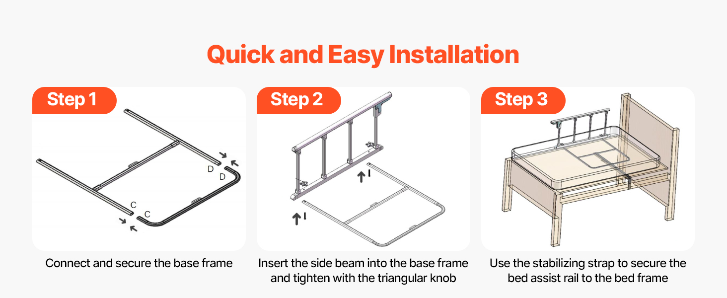 Pomocná lišta na posteľ sa jednoducho nastavuje - nie sú potrebné žiadne zložité nástroje ani odborné zručnosti, čo používateľom umožňuje rýchlu a bezproblémovú inštaláciu.