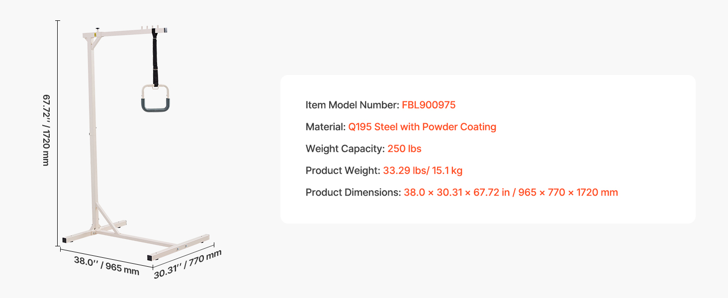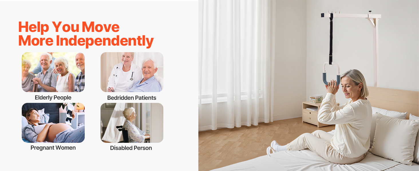 Táto pomocná hrazda na vyťahovanie, navrhnutá pre širokú škálu opatrovateľských prostredí, poskytuje stabilnú a spoľahlivú oporu na použitie v nemocniciach, domovoch dôchodcov a zariadeniach domácej starostlivosti. Umožňuje používateľom samostatne sa posadiť, presunúť sa na invalidný vozík a zmeniť polohu.