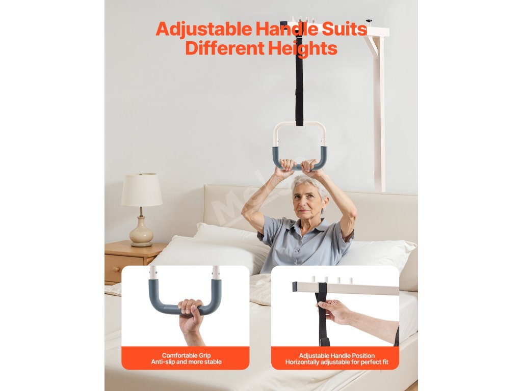 Táto hrazda na lôžko je ideálna pre seniorov, pacientov pripútaných na lôžko, tehotné ženy a osoby s obmedzenou pohyblivosťou, pretože poskytuje stabilnú oporu na bezproblémové posadenie, presun na invalidný vozík alebo úpravu polohy. Nevyhnutná pomôcka pre každodennú mobilitu a rehabilitačné potreby.