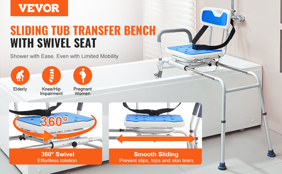 S posuvnou lavicou VEVOR na prestup do vane bude vaše sprchovanie bezpečnejšie a pohodlnejšie. Táto lavička na prenášanie do vane, ktorá je ideálna pre seniorov, zdravotne postihnutých a tehotné ženy, je vybavená plynulým posúvaním, sedadlom otočným o 360°, 15 nastaviteľnými výškami a podporou 400 libier pre maximálne pohodlie.
