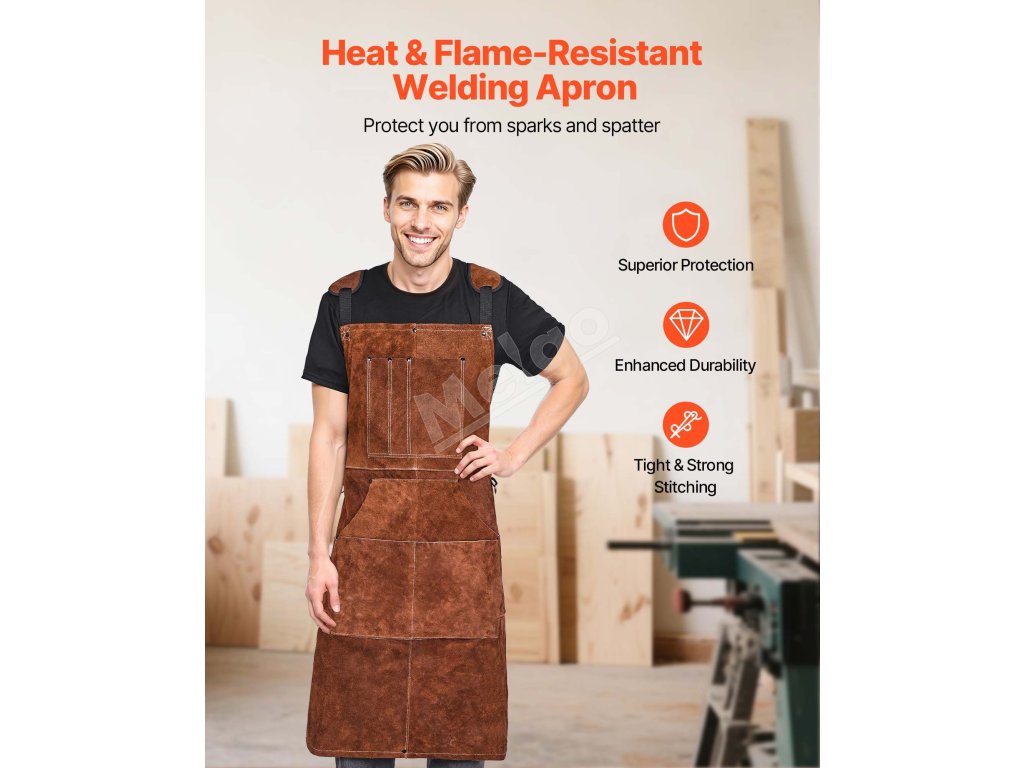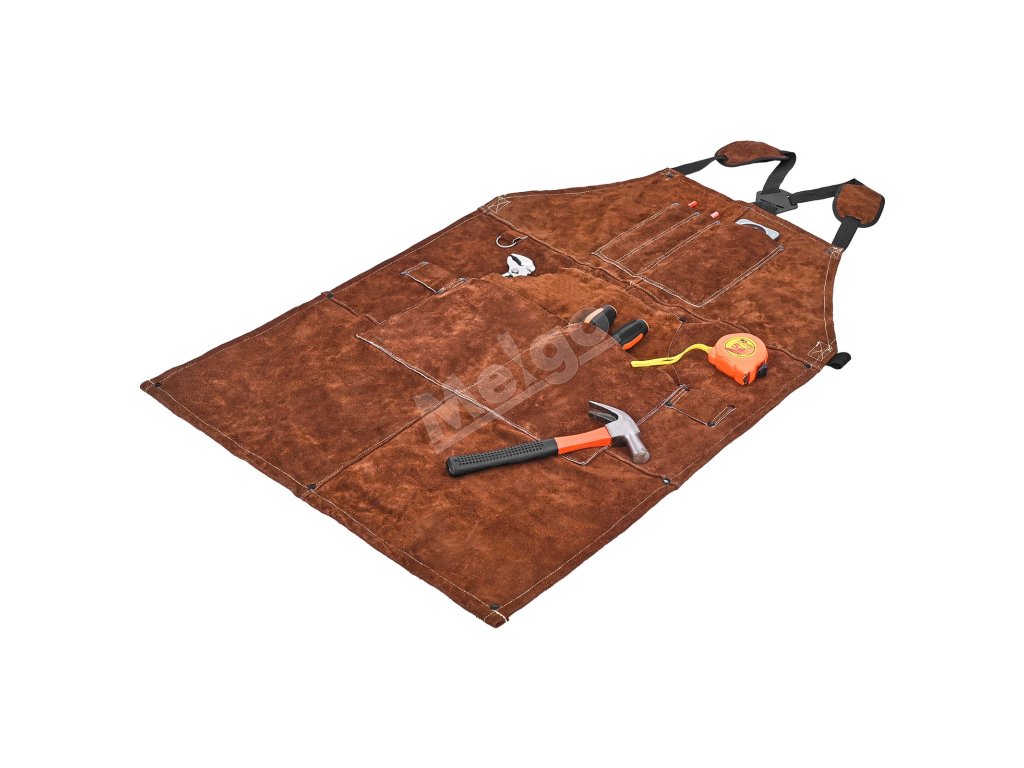 Kožená zváračská zástera z hovädzej kože, ohnivzdorná, 6 vreciek