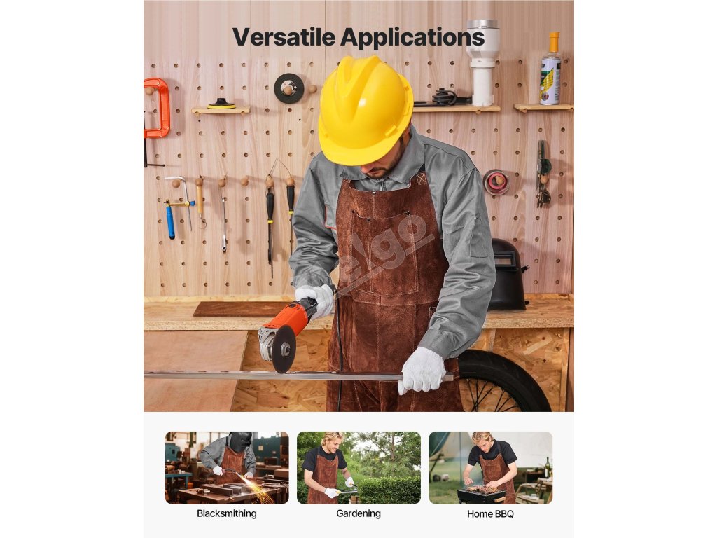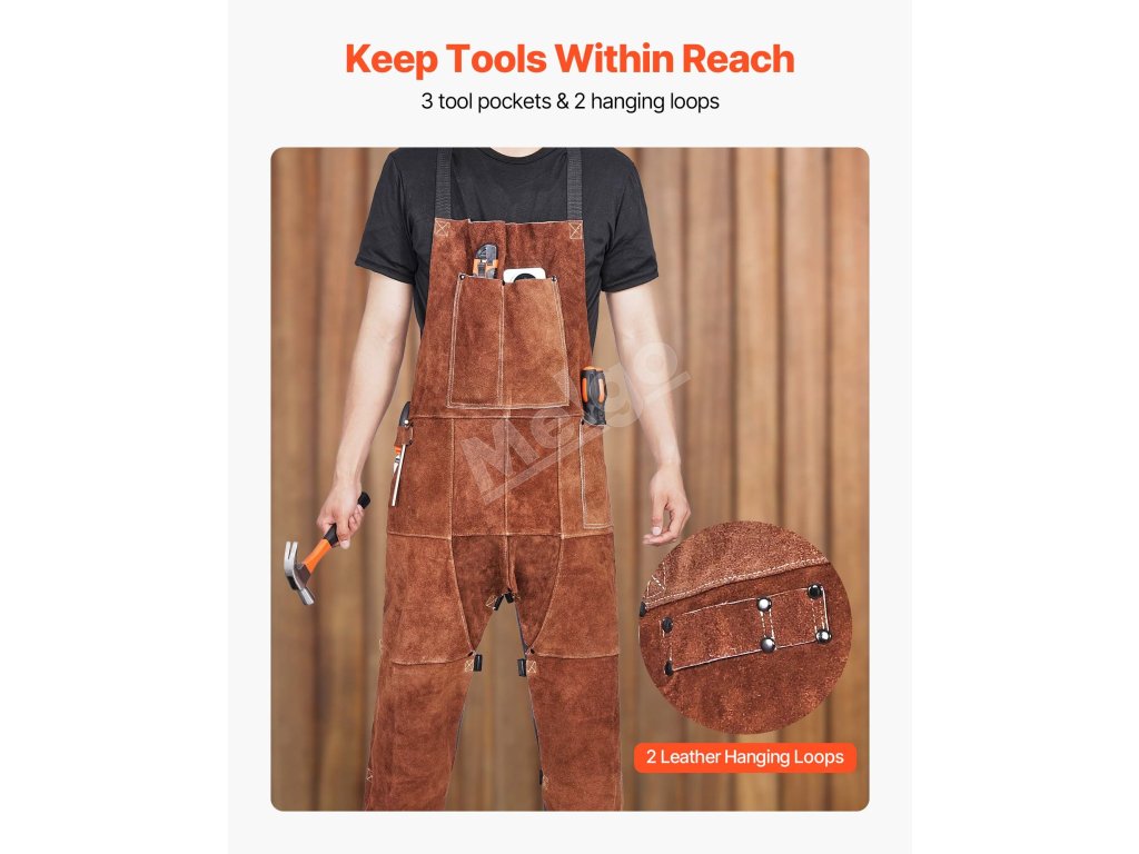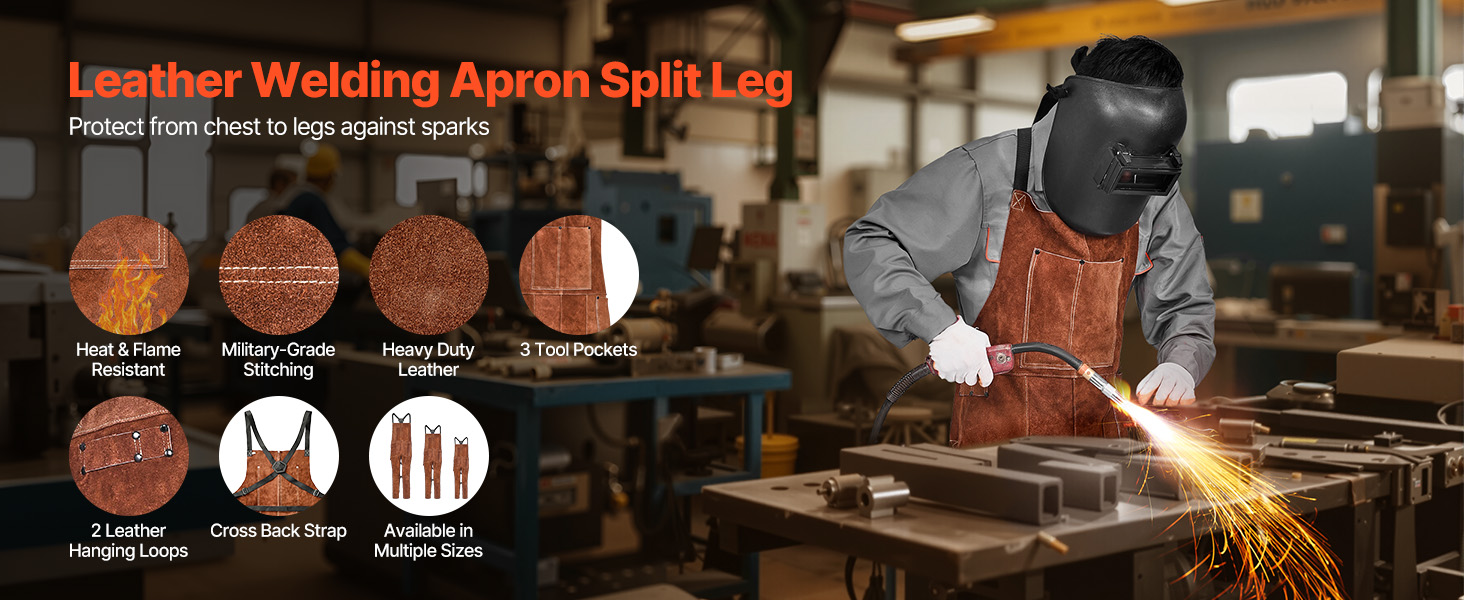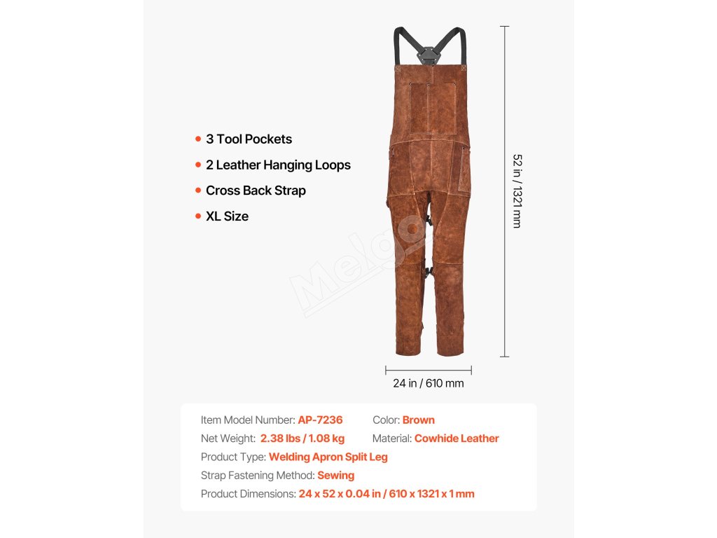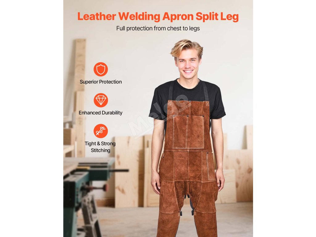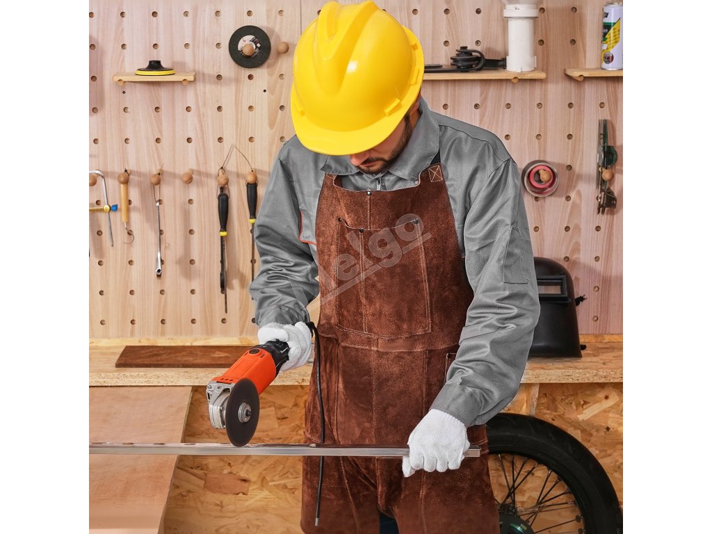 Zvárajte bezpečnejšie s našou odolnou koženou zváračskou zásterou s delenou nohou. Je odolná voči plameňom a trvácna, poskytuje spoľahlivú ochranu pred iskrami a plameňmi. Vďaka 3 vreckám na náradie, 2 koženým pútkam na zavesenie, konštrukcii s rozdelenou nohou a nastaviteľným krížovým popruhom na chrbte je ideálnym spoločníkom pri zváraní.