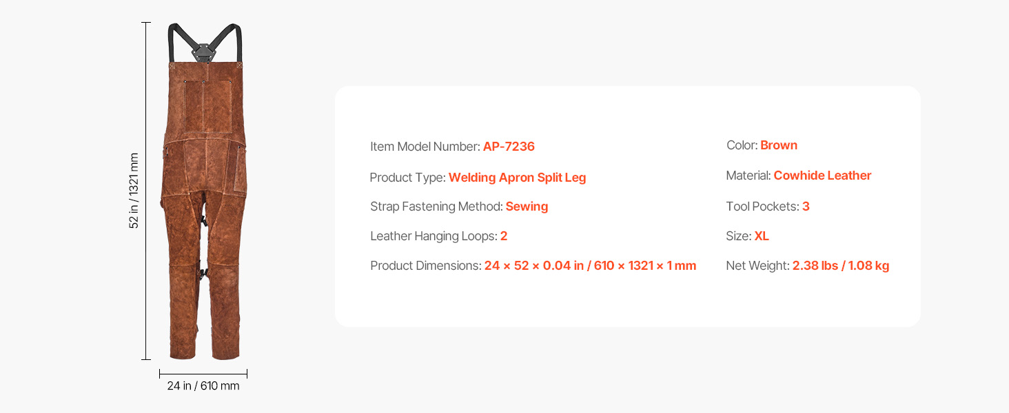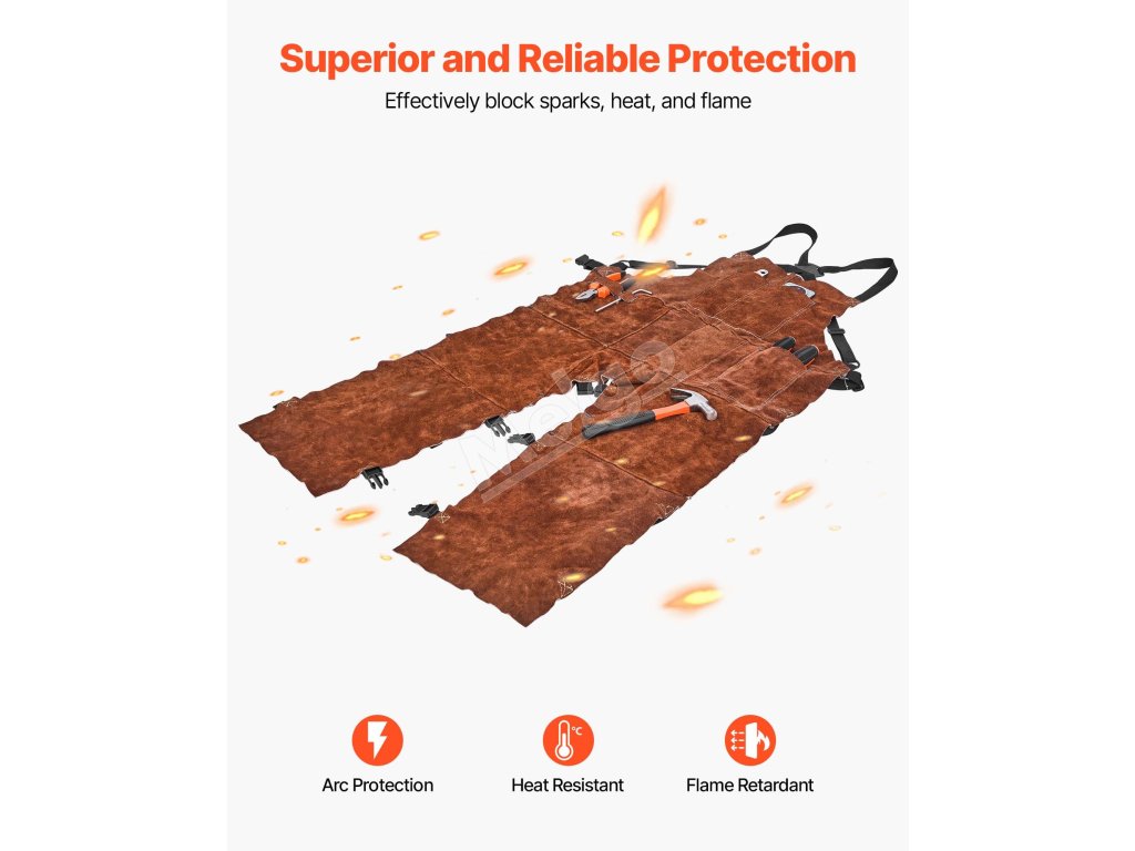 Táto žiaruvzdorná zváračská zástera s rozmermi 24 palcov na šírku a 52 palcov na dĺžku (610 x 1321 mm) poskytuje úplné pokrytie od hrudníka až po nohy a chráni vás pred iskrami, striekaním a teplom počas zvárania, brúsenia a iných úloh pri vysokých teplotách.