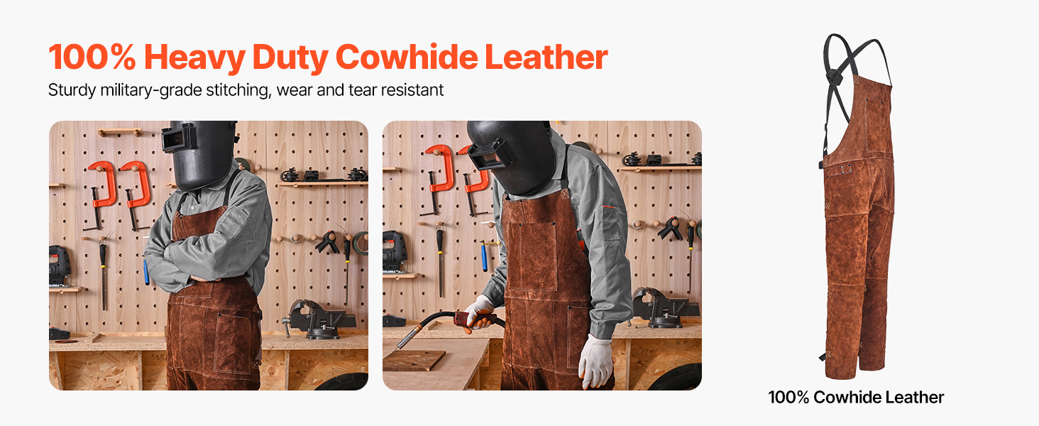 Táto zváračská pracovná zástera je vyrobená z odolnej hovädzej kože s vojenským prešívaním, je odolná proti opotrebovaniu, roztrhnutiu a je stvorená na náročné práce, ako je zváranie, kováčstvo a práca s drevom.