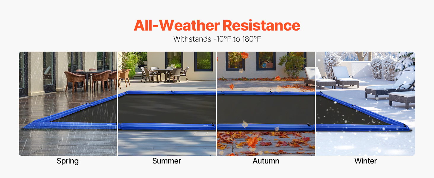 Vaky na vodu na krytie bazénových záťaží, ktoré sú skonštruované tak, aby zvládli extrémne slnko a chlad, neprasknú pri horúčavách ani neztvrdnú pri teplotách pod bodom mrazu. Spoľahlivé na celoročné používanie v exteriéri.