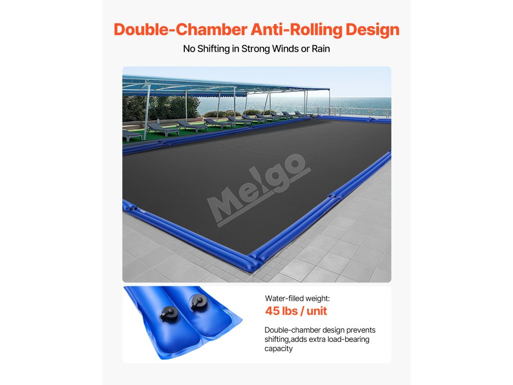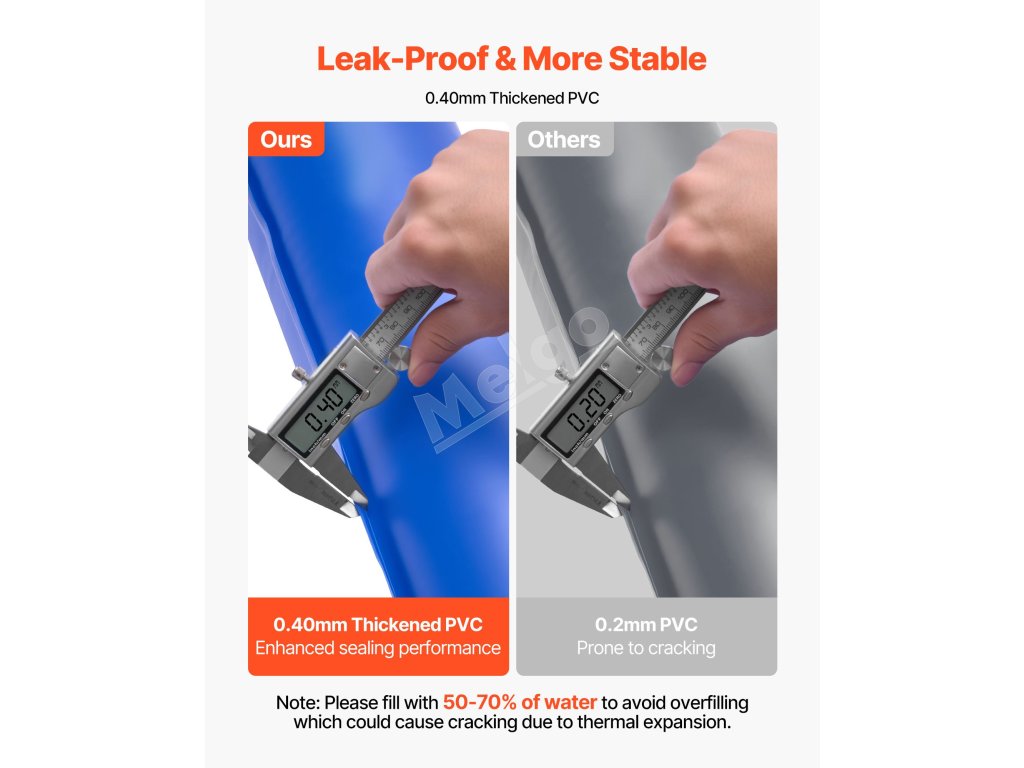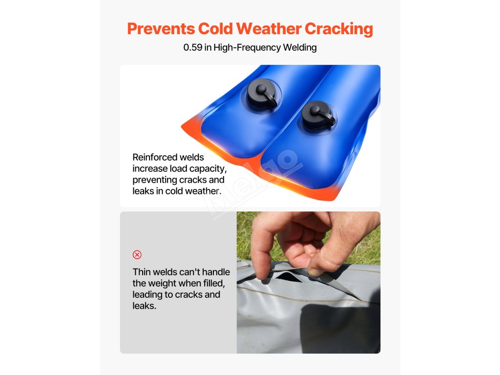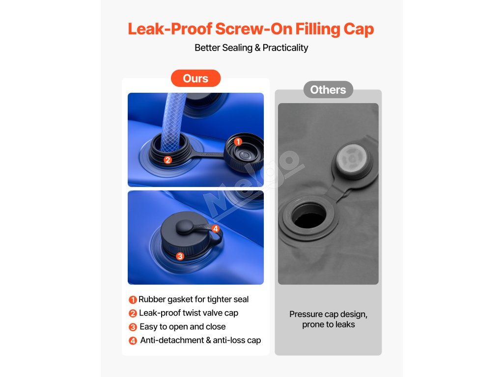 Obsahuje integrovaný závitový otočný ventil na bezproblémovú prevádzku odolnú proti úniku. Rozšírený otvor je vhodný pre väčšinu záhradných hadíc na jednoduché plnenie, zatiaľ čo 0,59-palcové tepelne zvárané švy ponúkajú bezpečné tesnenie a minimalizujú únik. Dvojité komory zabraňujú pretočeniu pri silnom vetre, čím zlepšujú stabilitu.