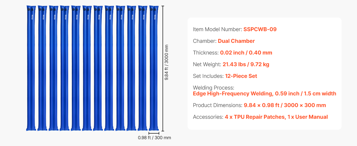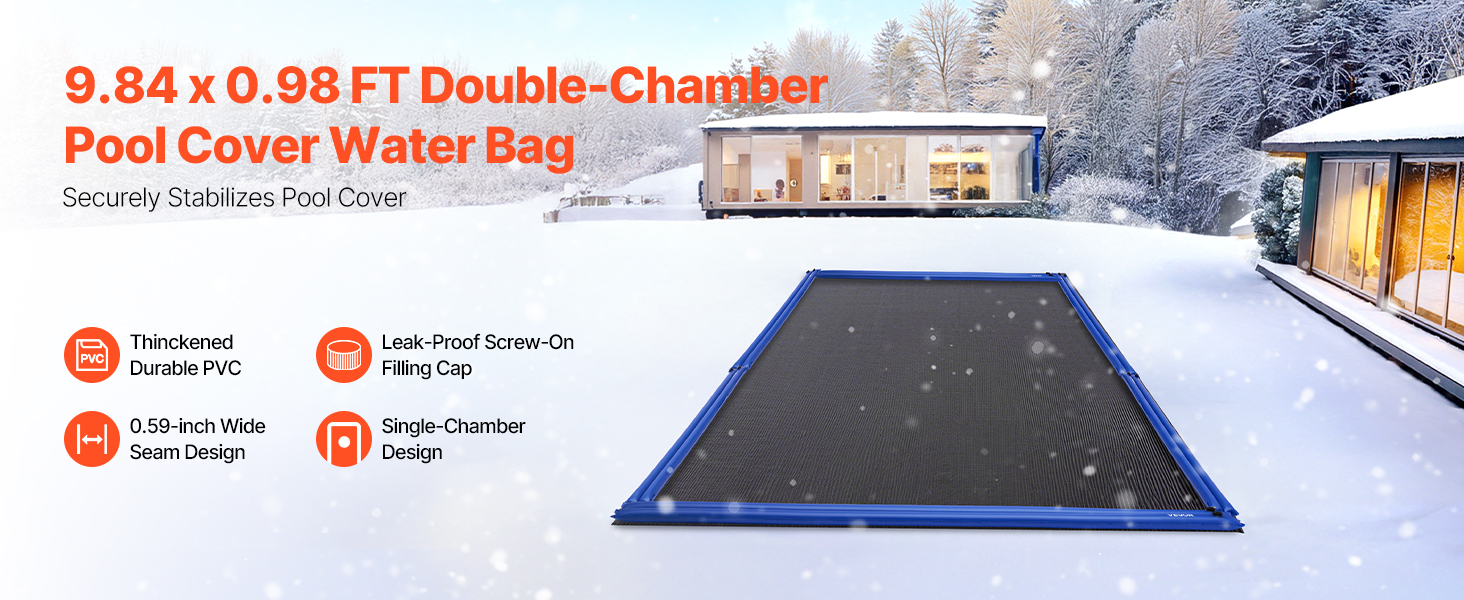 Každá vodná rúrka s rozmermi 118,1 x 11,81 palca je špeciálne vyrobená na zimu a pomáha zabezpečiť kryt bazéna v nepriaznivom počasí. Tieto vodné vaky na bazénové krytie, ktoré sú navrhnuté tak, aby zabránili vniknutiu lístia a nečistôt do bazéna, udržujú váš bazén čistý a skracujú čas potrebný na údržbu počas celej sezóny.