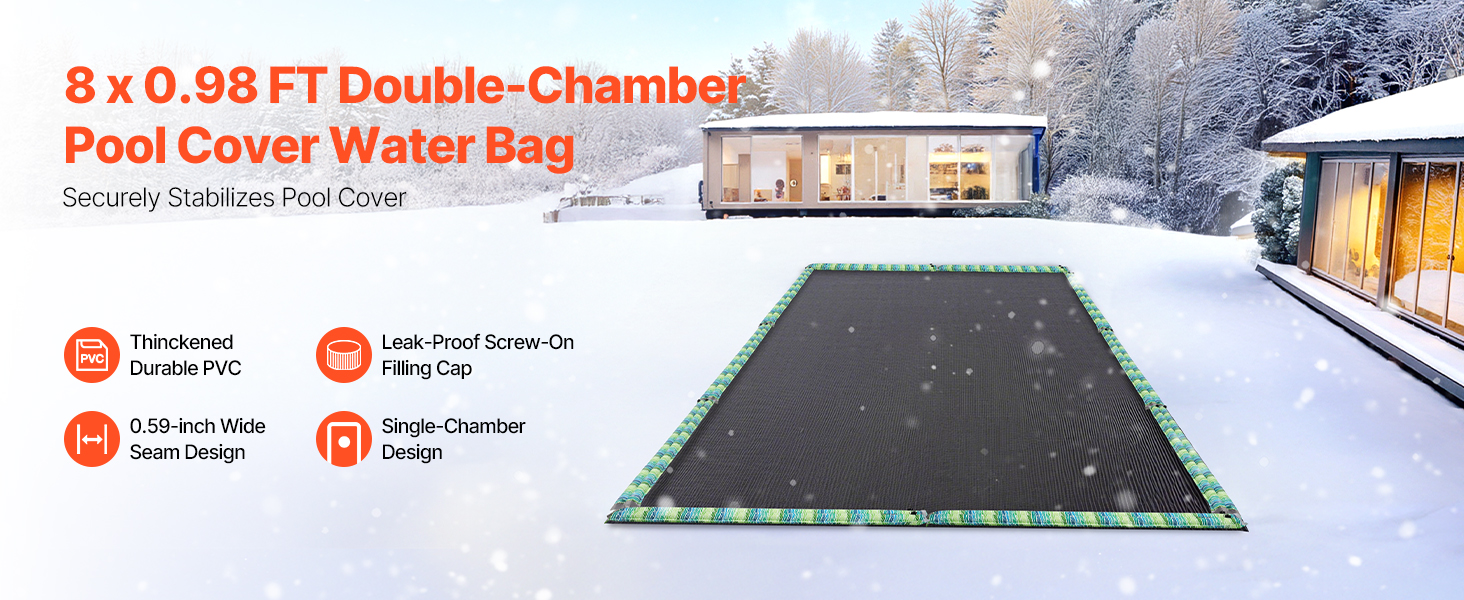 Každé zimné krycie vrecko na vodu do bazéna s rozmermi 94,49 x 11,81 palca je vybavené reflexnými prúžkami pre lepšiu viditeľnosť v noci a väčšiu bezpečnosť. Tieto vrecká sú navrhnuté tak, aby udržali kryt bazéna na mieste počas zimy a zabránili vniknutiu lístia a nečistôt do bazéna - udržiavajú ho čistý a znižujú náklady na údržbu.
