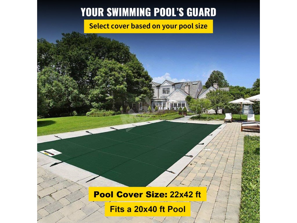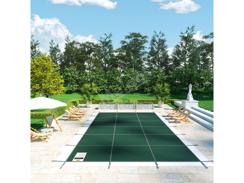 Bezpečnostný kryt bazéna 6.09×12.19 m sieťový s odtokmi zelený