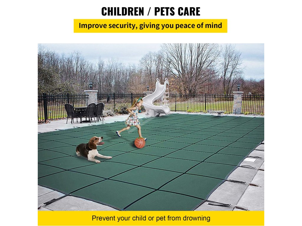 Udržujte svoj bazén čistý s minimálnym úsilím pomocou bezpečnostného krytu bazéna VEVOR. Vďaka nemu bude váš bazén čistý a dobre udržiavaný. Je navrhnutý tak, aby sa ľahko inštaloval a používal, a ponúka skvelé funkcie, ako je úspora vody a blokovanie nečistôt. Tento kryt je vyrobený z pevných materiálov, je konštruovaný tak, aby vydržal a udržal vašu rodinu a domácich miláčikov v bezpečí. Vďaka jeho úhľadnému dizajnu bude váš bazén vyzerať pekne a udrží váš bazén čistý a pripravený na používanie. Či už ho potrebujete na sezónnu ochranu alebo celoročne, kryt na zapustený bazén VEVOR vyhovuje vašim potrebám a uľahčuje starostlivosť o bazén.