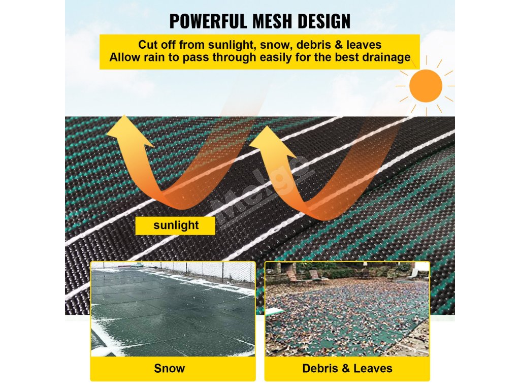 Zimný kryt bazéna VEVOR je veľmi flexibilný a dá sa použiť na mnoho vecí. Jeho veľkosť môžete prispôsobiť tak, aby sa hodil na akýkoľvek bazén bez ohľadu na jeho tvar alebo veľkosť. Dobre funguje v lete aj v zime. Kryt udržiava váš bazén čistý tým, že zabraňuje vnikaniu lístia a nečistôt. Pomáha tiež šetriť vodu tým, že zabraňuje odparovaniu. Okrem toho udržiava stabilnú teplotu bazéna. Tento bezpečnostný kryt bazéna dokáže splniť vaše požiadavky, či už ho potrebujete príležitostne alebo celoročne.