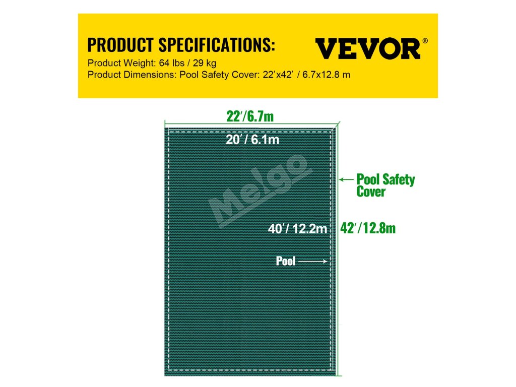 - Veľkosť krytu bazéna: 22 x 42 stôp / 6,7 x 12,8 m