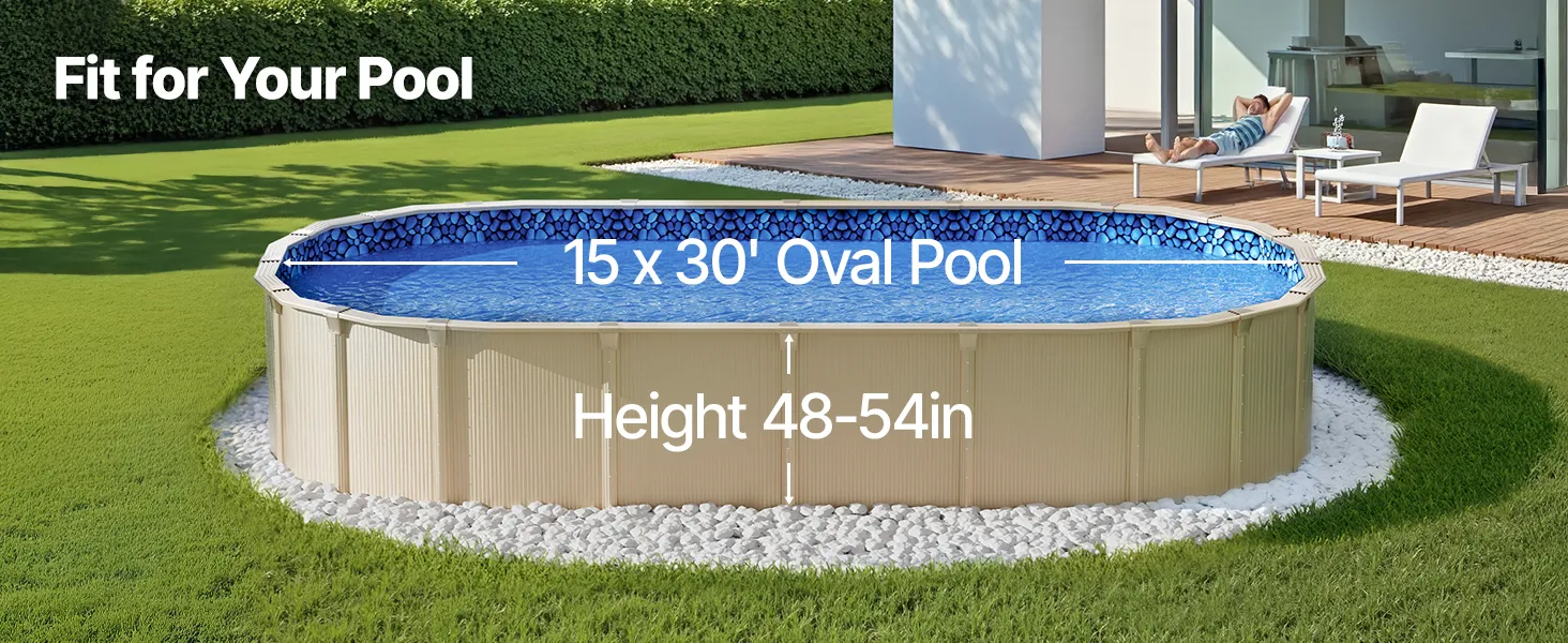 Oválny liner bazéna 15×30 ft, overlap, výška steny 48–54 in, vinyl