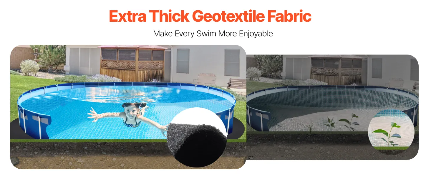 Naša mimoriadne hrubá podložka pod bazénovú vložku poskytuje vynikajúcu ochranu pred ostrými predmetmi, burinou a znečistením vody.