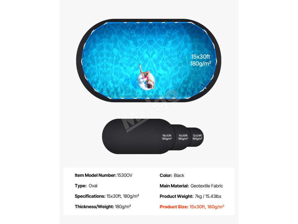 | Veľkosť výrobku | Ovál, 15x30 stôp, 180g/m2 |