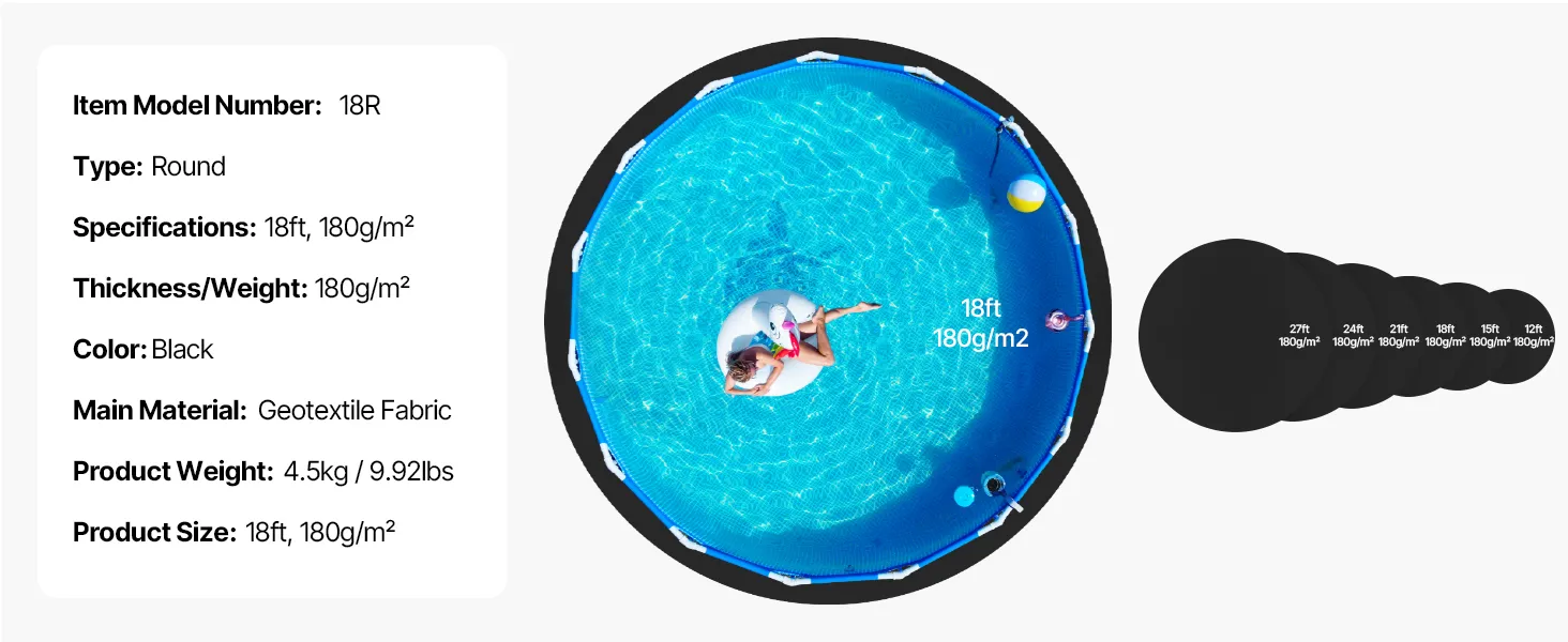 Naša mimoriadne hrubá podložka pod bazénovú vložku poskytuje vynikajúcu ochranu pred ostrými predmetmi, burinou a znečistením vody. Je navrhnutá na jednoduchú inštaláciu a maximálnu odolnosť, čím vám a vašej rodine zaručuje bezpečné, čisté a pohodlné kúpanie počas celého leta.