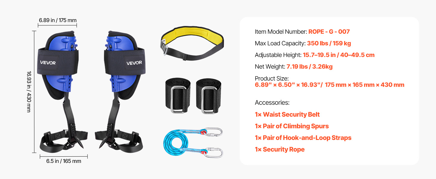 Súprava lezeckých špicov sa dodáva s odolným úžitkovým lanom, ktoré je skonštruované s ohľadom na pevnosť a odolnosť proti opotrebovaniu. Poskytuje spoľahlivú ochranu proti pádu a stabilnú oporu, vďaka čomu je orezávanie stromov, zber ovocia a práca na úžitkových stĺpoch bezpečnejšia