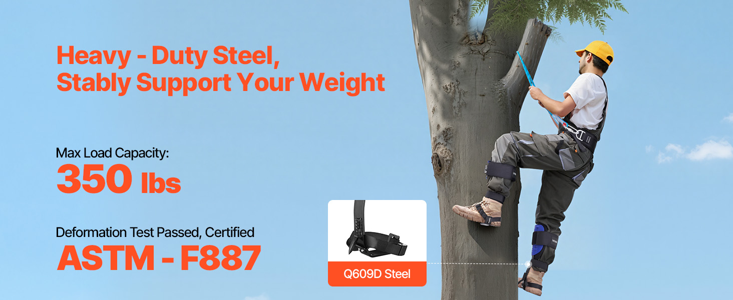 Súprava hrotov na lezenie po stromoch, vyrobená z odolnej ocele, unesie až 350 kg. Testované podľa normy ASTM F887 na odolnosť, čo zaručuje bezpečnosť pri každom lezení.