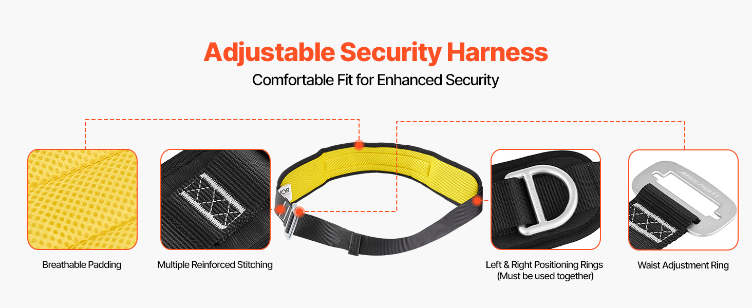 Sedací postroj sa obopína okolo pása a vytvára stabilný systém rozloženia hmotnosti. Či už ide o lezenie, zlaňovanie alebo výškové práce, zaručuje bezpečnostnú ochranu aj flexibilné pohodlie.