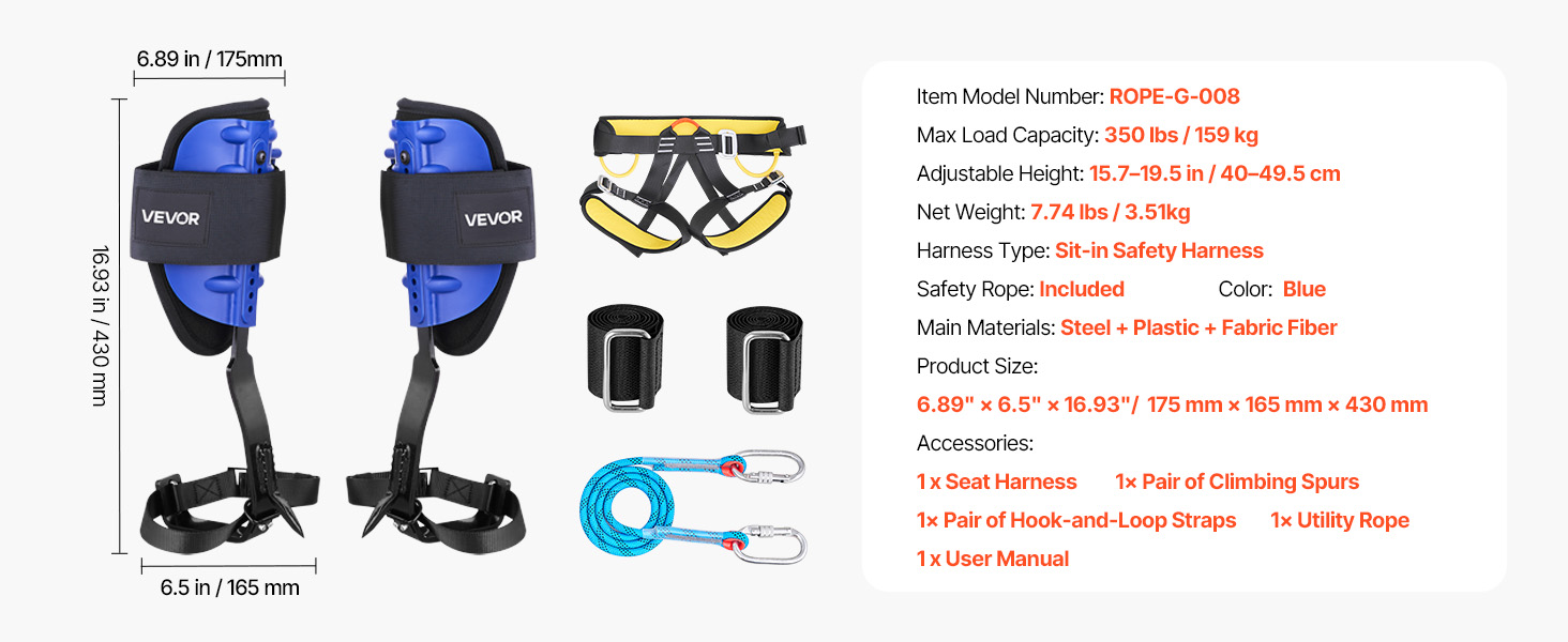 Tieto hroty na lezenie na stromy sú vyrobené s vysokopevnostným rámom pre vynikajúcu nosnosť a majú ergonomické polstrované popruhy pre celodenné pohodlie. Navrhnuté na vysokohorské úlohy, ideálne na lezenie po stromoch a zber ovocia.