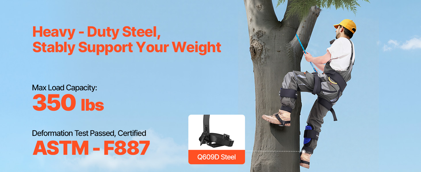 Súprava hrotov na lezenie po stromoch, vyrobená z odolnej ocele, unesie až 350 kg. Testované podľa normy ASTM F887 na odolnosť, čo zaručuje bezpečnosť pri každom lezení.