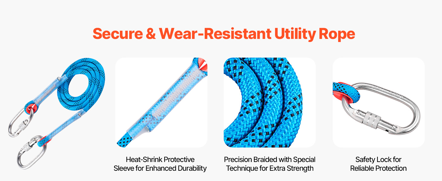 Súprava lezeckého hrotu sa dodáva s odolným úžitkovým lanom, ktoré je skonštruované s ohľadom na pevnosť a odolnosť proti opotrebovaniu. Poskytuje spoľahlivú ochranu proti pádu a stabilnú oporu, vďaka čomu je orezávanie stromov, zber ovocia a práca na úžitkových stĺpoch bezpečnejšia