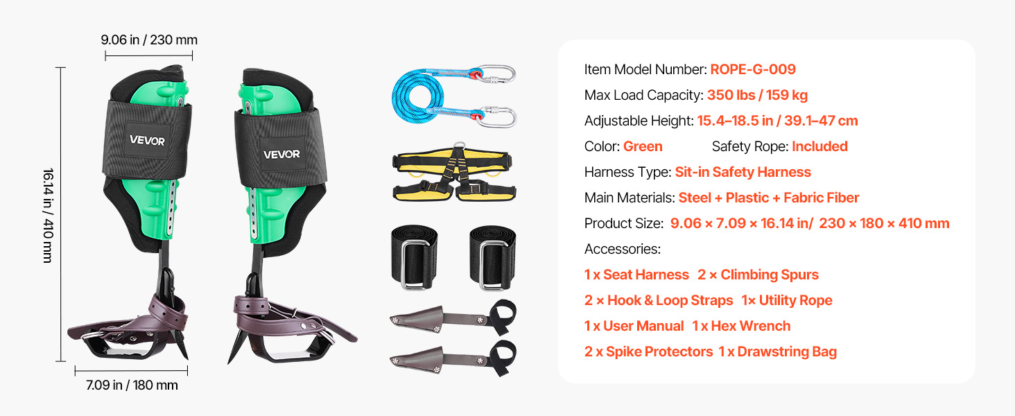 Tieto hroty na lezenie na stromy sú vyrobené s vysokopevnostným rámom pre vynikajúcu nosnosť a majú ergonomické polstrované popruhy pre celodenné pohodlie. Navrhnuté na vysokohorské úlohy, ideálne na lezenie po stromoch a zber ovocia.