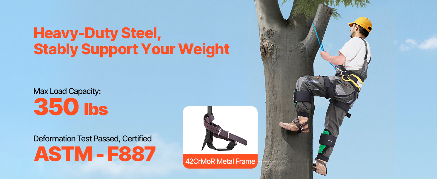 Súprava hrotov na lezenie po stromoch, vyrobená z odolnej ocele, unesie až 350 kg. Testované podľa normy ASTM F887 na odolnosť, čo zaručuje bezpečnosť pri každom lezení.
