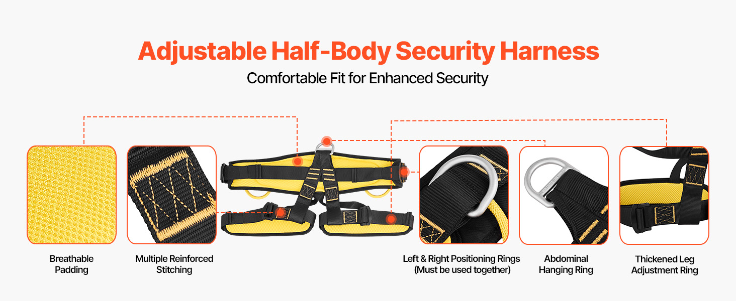 Sedací postroj sa obopína okolo pása a stehien a vytvára stabilný systém rozloženia hmotnosti, bezpečne fixuje dolnú časť tela a znižuje náraz v prípade pádu. Či už ide o lezenie, zlaňovanie alebo výškové práce, zaručuje bezpečnostnú ochranu aj flexibilné pohodlie.