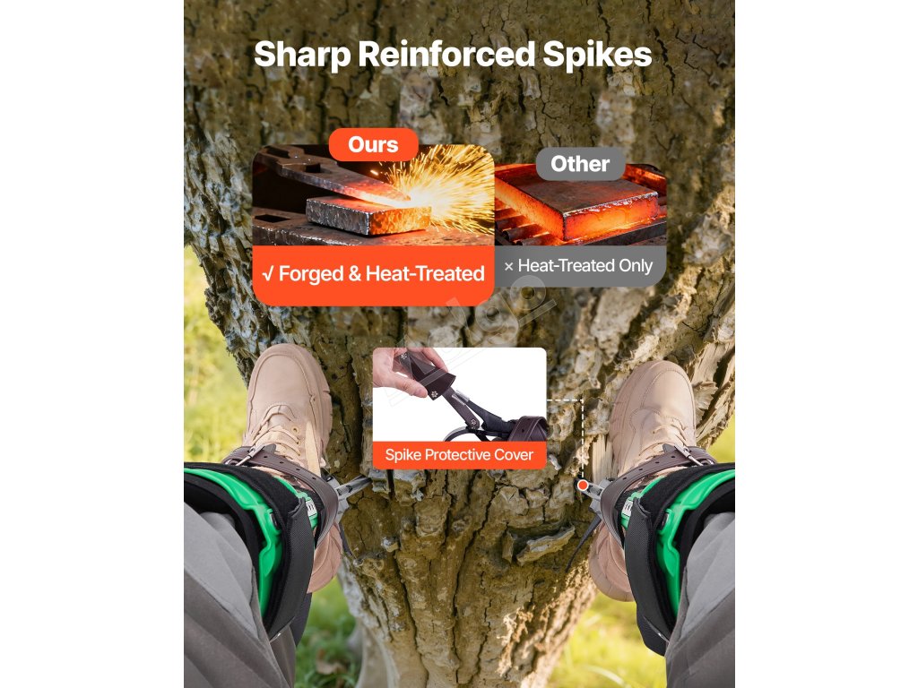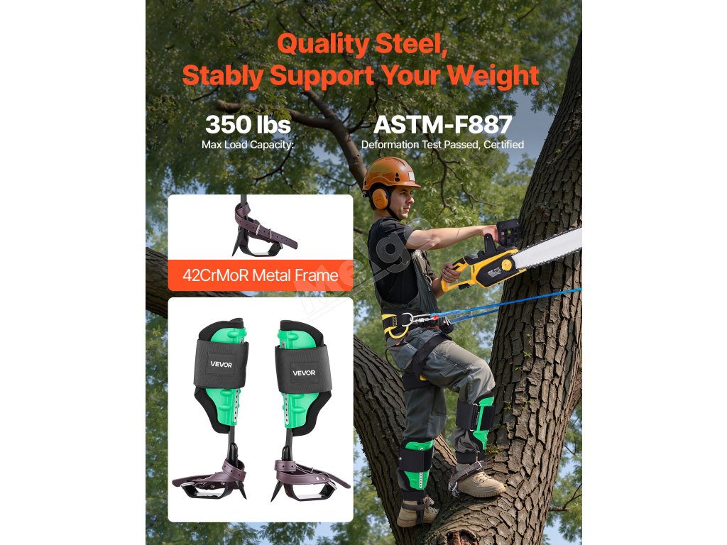 Súprava hrotov na lezenie po stromoch, vyrobená z odolnej ocele, unesie až 350 kg. Testované podľa normy ASTM F887 na odolnosť, čo zaručuje bezpečnosť pri každom lezení.
