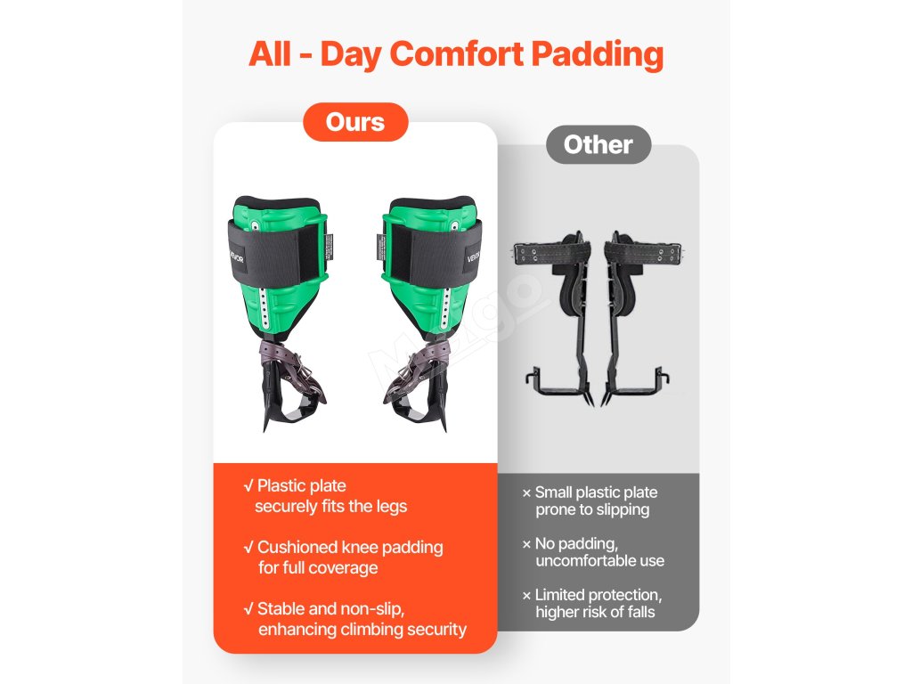 Tieto hroty na lezenie na stromy sú vyrobené s vysokopevnostným rámom pre vynikajúcu nosnosť a majú ergonomické polstrované popruhy pre celodenné pohodlie. Navrhnuté na vysokohorské úlohy, ideálne na lezenie po stromoch a zber ovocia.