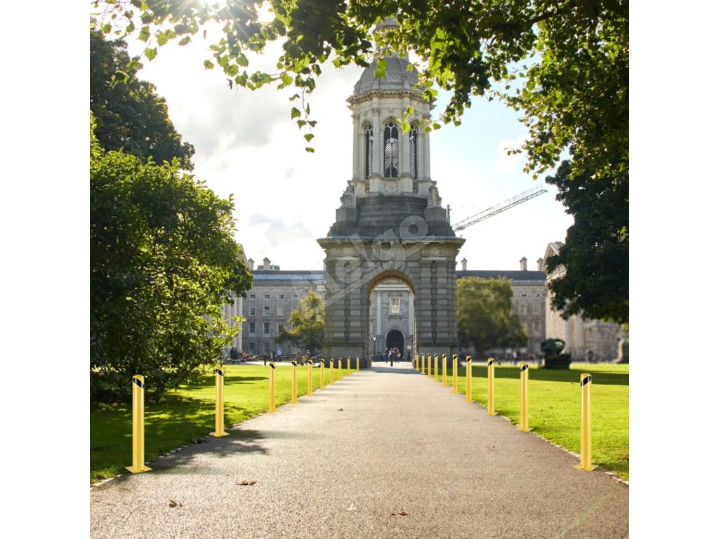 Bezpečnostný oceľový stĺpik 42 inch priemer 4.5 inch žltý 8 kotiev