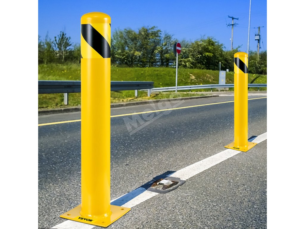 Oceľový stĺpik, výška 48 inch, priemer 4.5 inch, žltý, 8 kotiev