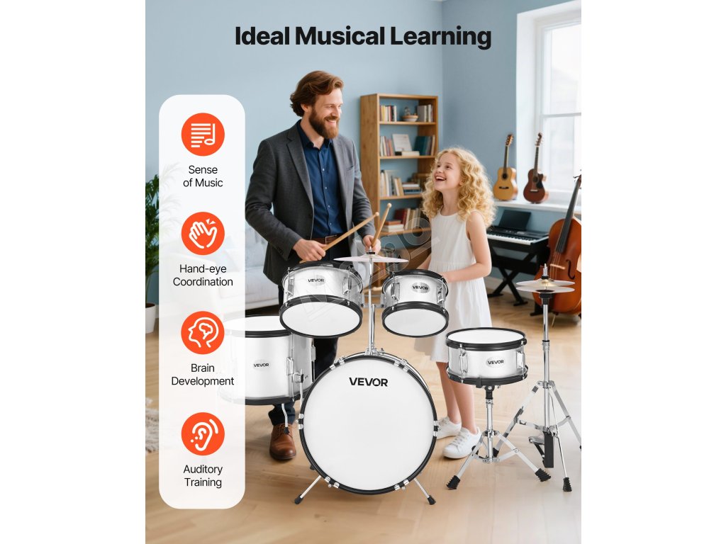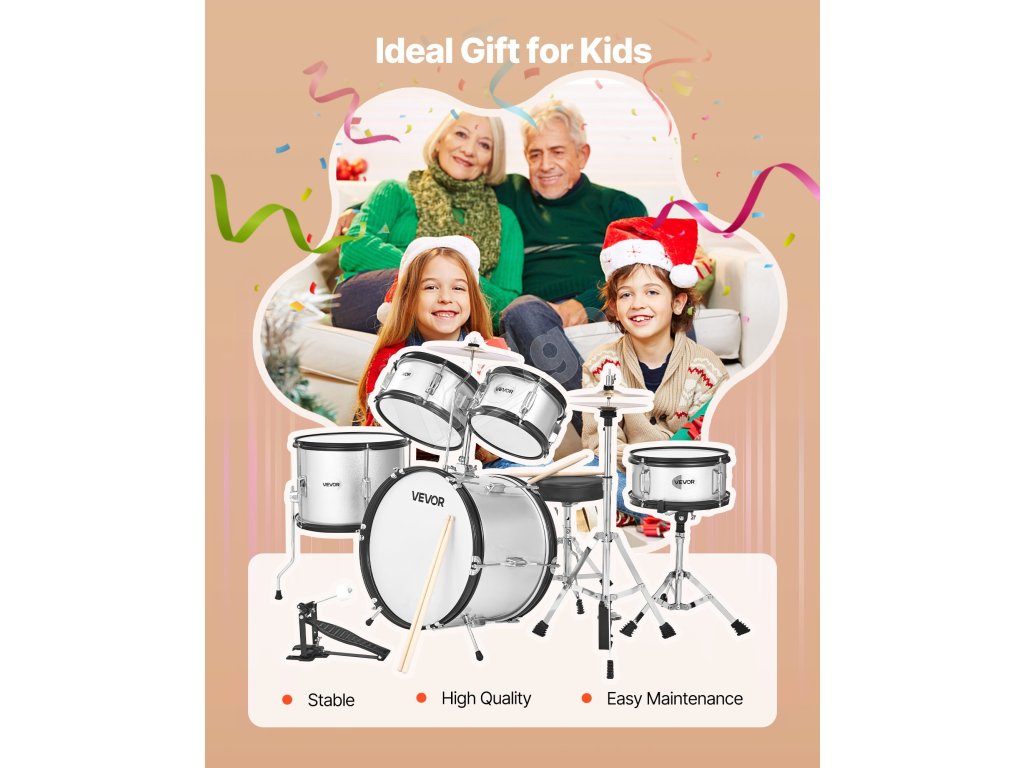 Odpoveď: Táto bicia súprava je špeciálne navrhnutá pre deti a začiatočníkov, vďaka čomu sa môžu ľahko začať učiť a užívať si bubnovanie.