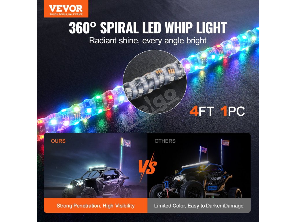 Led bič 4 ft, rgb 360° špirála, vodotesný, app a rf ovládanie